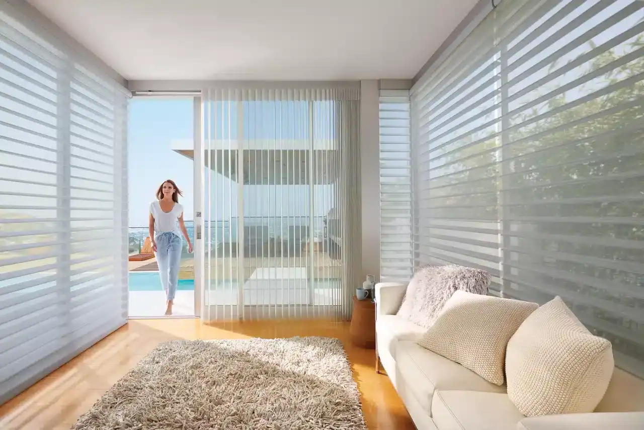 Available in a wide selection of fabrics, colors, and textures, Silhouette® Sheer Shades can be customized to complement any décor. Options include room-darkening liners for added versatility and PowerView® Automation for smart, cordless control. Perfect for living rooms, dining spaces, and bedrooms, Silhouette® Sheer Shades combine graceful style with practical functionality, transforming natural light into a warm and inviting feature of your home.