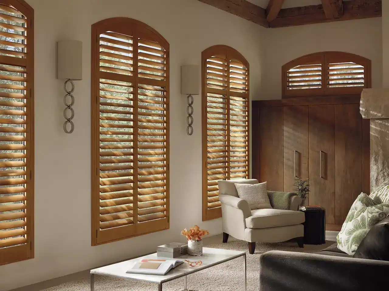 Shutters are a durable, classic window covering crafted with solid panels and adjustable louvers that provide excellent light control, privacy, and insulation. Built directly into the window frame, they create a clean, architectural finish that enhances both traditional and contemporary interiors. At Advance, we offer premium Hunter Douglas shutters, including hardwood, composite, and moisture-resistant Polysatin™ materials. Perfect for kitchens, bathrooms, or any high-humidity space, shutters deliver long-lasting durability, easy upkeep, and timeless style.